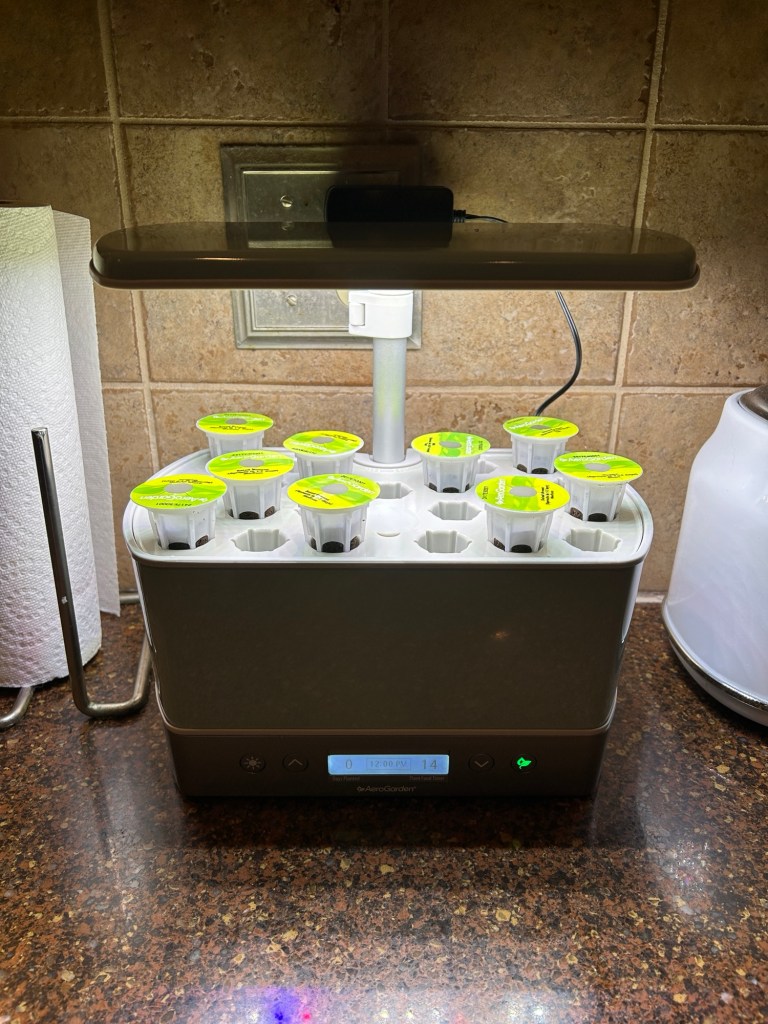 On the greens front, salads are one of the few greens my son loves, and using fresh herbs in my cooking makes me feel like Gordon Ramsay, only friendlier (most days.) So after I was done making fun of my mom’s obnoxiously bright planter in her kitchen, I decided to look into an Aerogarden for myself. An Aerogarden is a really great way to grow fresh lettuce and herbs in your kitchen regardless of where you live, and it also looks super cute. I got the Aerogarden Harvest Elite and it was the perfect size.